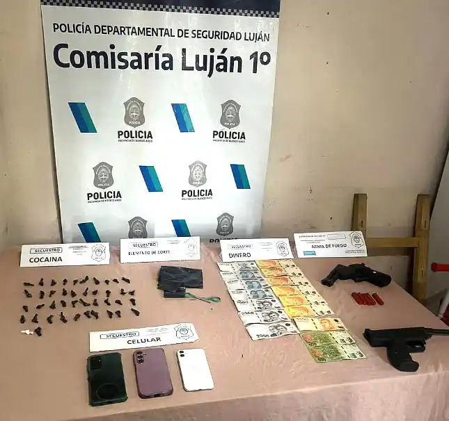 Durante el operativo se procedió al secuestro de un pistón marca Rexio Súper calibre .32 con cinco cartuchos del mismo calibre, un rifle de aire comprimido marca Air Pistol, 42 envoltorios de nylon que contenían clorhidrato de cocaína —con resultado positivo en el test de campo—, la suma de 64.000 pesos en efectivo y un teléfono celular Samsung modelo A16.