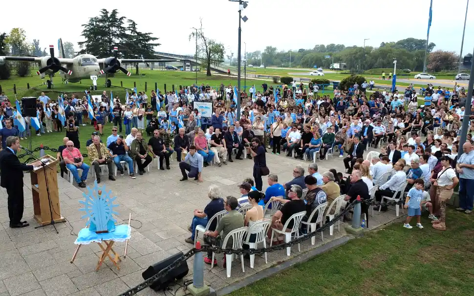 La ceremonia incluyó la entonación del Himno Nacional Argentino, interpretado por la Banda “9 de Julio” de los Bomberos Voluntarios, con la participación de artistas locales. Posteriormente, se colocaron ofrendas florales al pie del monumento y se realizó un respetuoso minuto de silencio.