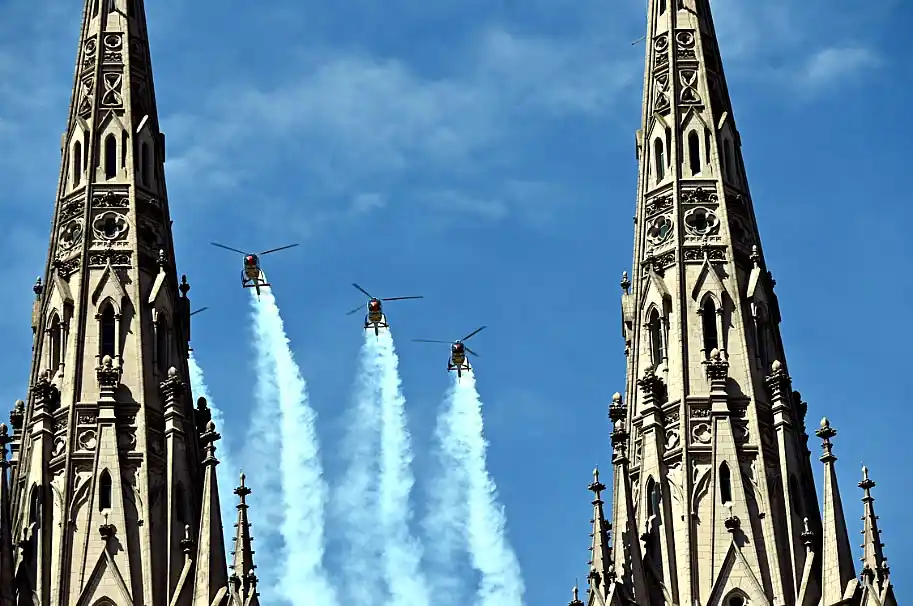 Luján conmemoró el centenario del vuelo del Plus Ultra con un homenaje aéreo de la Patrulla española ASPA, que sobrevoló la Basílica y reafirmó el vínculo aeronaútico entre Argentina y España.