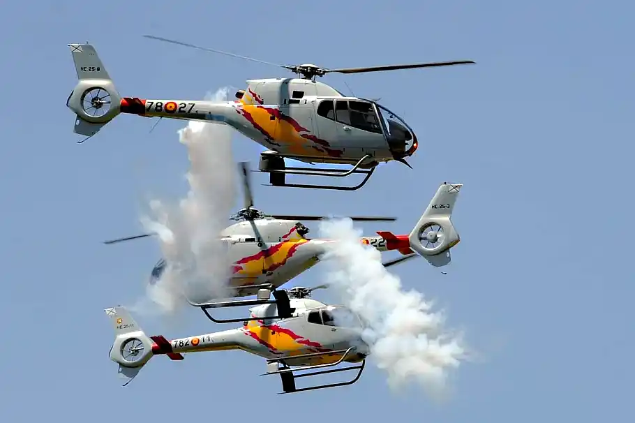El homenaje estuvo protagonizado por seis helicópteros Eurocopter EC-120 Colibrí, que realizaron maniobras de alta precisión y desplegaron humo con los colores de la bandera argentina. La exhibición aérea combinó destreza técnica, coordinación y un fuerte contenido simbólico, en reconocimiento a una de las mayores hazañas de la aviación del siglo XX.