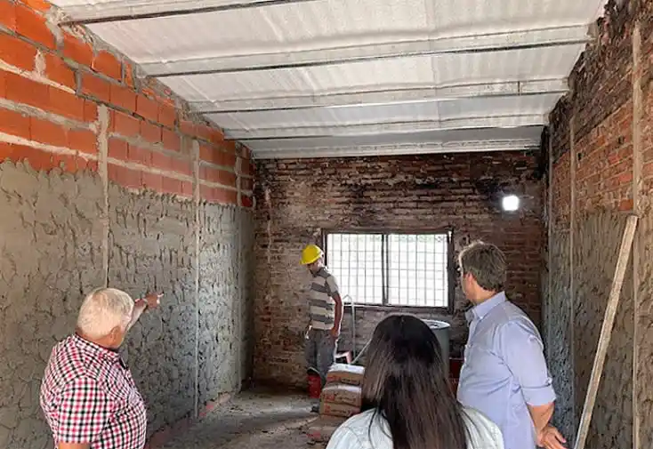 De forma simultánea, las cuadrillas municipales desarrollan labores en la Escuela Primaria N° 2, situada en Constitución y Entre Ríos. En este histórico edificio, las obras han abordado problemas de fondo, comenzando por la extracción de los cielorrasos antiguos y la colocación de nuevas estructuras con tratamiento específico antihumedad.